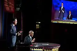 President Barack Obama guested during the show's final month, in a show taped from George Washington University in Washington, D.C.; Obama sat in Colbert's seat and presided over "The Wørd" segment.[84][85]