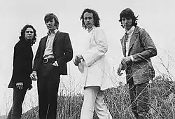 The Doors c. 1966. From left to right: Jim Morrison, John Densmore, Ray Manzarek and Robby Krieger | |
