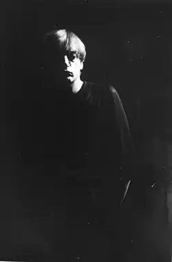 The Fall were formed in Prestwich, England in 1976 by Mark E. Smith, Martin Bramah, Una Baines, and Tony Friel. The four friends met to read their writings to each other and take drugs.[9] Their musical influences included Can (which the band would later pay tribute to on the track "I Am Damo Suzuki"), the Velvet Underground, Captain Beefheart and garage rock bands like the Monks and the Stooges.[10] The members were devoted readers, with Smith citing H. P. Lovecraft, Raymond Chandler and Malcolm Lowry among his favourite writers.[11] After seeing the Sex Pistols play their second gig at Manchester's Lesser Free Trade Hall in July 1976, they decided to start a group. Smith wanted to name the group "the Outsiders", but Friel came up with the name "the Fall" after a 1956 novel by Albert Camus.[12] Smith became the singer, Bramah the guitarist, Friel played bass guitar and Baines bashed biscuit tins instead of drums; unable to afford to buy a drum kit, she then switched to keyboards.[13] Their music was intentionally raw and repetitive.[10] The song "Repetition", declaring that "We dig repetition in the music And we're never going to lose it", served as a manifesto for the Fall's musical philosophy.[14][15]