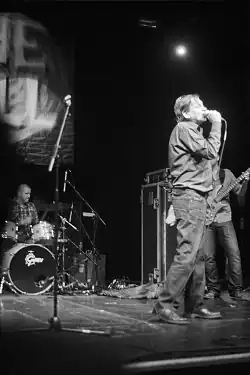 The Fall were an English post-punk band, formed in 1976 in Prestwich, Greater Manchester. They had many line-up changes, with vocalist and founder Mark E. Smith being the only constant member.[1][2] The Fall's long-term musicians included drummers Paul Hanley, Simon Wolstencroft and Karl Burns; guitarists Craig Scanlon, Marc Riley, and Brix Smith; and bassist Steve Hanley, whose melodic, circular bass lines are widely credited with shaping the band's sound from early 1980s albums such as Hex Enduction Hour to the late 1990s.[3]