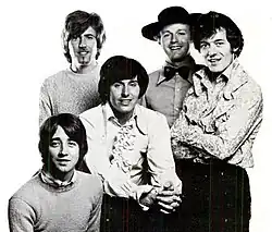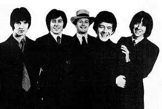 ![]() The Hollies in 1964 Left to right: Eric Haydock, Allan Clarke, Graham Nash, Tony Hicks, Bobby Elliott | |