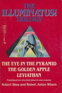 The Illuminatus! Trilogy is a series of three novels by American writers Robert Shea and Robert Anton Wilson, first published in 1975.[1] The trilogy is a satirical, postmodern, science fiction–influenced adventure story; a drug-, sex-, and magic-laden trek through a number of conspiracy theories, both historical and imaginary, related to the authors' version of the Illuminati. The narrative often switches between third- and first-person perspectives in a nonlinear narrative. It is thematically dense, covering topics like counterculture, numerology, and Discordianism.