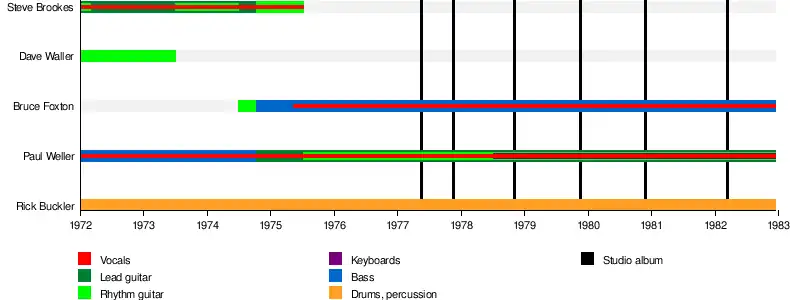 - Paul Weller – lead and backing vocals, lead guitar, bass, keyboards (1972–1982)
