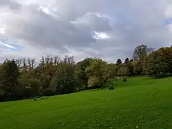 In later interviews, Ray has regularly cited the Kinks' five-year ban from American performance as producing his pivot towards English-focused lyrics.[34] Author Andy Miller instead connects Ray's writing to a broader tradition of English pastoral poetry – made up of authors like William Blake, William Wordsworth and Oliver Goldsmith – which often yearned for an idealised past rural England.[35] Academic Carey Fleiner writes that his idealisation of both rural and home life fitted in the revival of the "heritage escapism" trend, which surged across English popular culture following the Second World War.[36][nb 4] Ray has also discussed his childhood as influencing his lyrics' sentiments towards village life.[37][38] Both Ray and his brother Dave grew up in Fortis Green, a suburban neighbourhood of Muswell Hill in North London;[39] though the area did not have a traditional village green as a common area,[40] Ray has regularly described the area in rural terms and has compared its atmosphere to that of a village.[41][nb 5] He has also mentioned Waterlow Park in the nearby suburb of Highgate and its small lake as an influence.[38][43][nb 6]