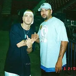 Eminem (left) at the ARCO Arena for the Up in Smoke Tour, in June 2000, a month after the album's release