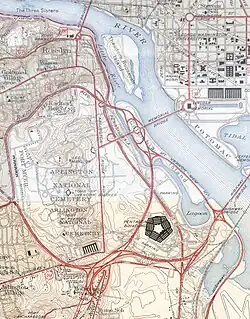 - ^ F.W. Cron (25 October 1960). "History of the Pentagon Network". U.S. Department of Commerce, Bureau of Public Roads. Via Kozel, Scott M. (14 August 1997). "Pentagon Road System". Roads to the Future. Archived from the original on 16 September 2021. Retrieved 17 February 2006.