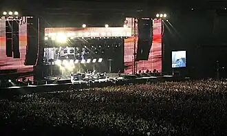 Tickets for the British leg of the tour sold out within 30 minutes, and the band played two nights at Twickenham Stadium on 8 and 9 September.[75] On 29 and 30 September 2007, Padovani joined the group on stage for the final encore of their two shows in Paris, playing the song "Next to You" as a four-piece band.[76] In October 2007, the group played the largest gig of the reunion tour in Dublin in front of 82,000 fans.[77] The group headlined the TW Classic festival in Werchter, Belgium on 7 June 2008. They also headlined the last night of the 2008 Isle of Wight Festival on 15 June,[78] the Heineken Jammin' Festival in Venice on 23 June and the Sunday night at Hard Rock Calling (previously called Hyde Park Calling) in London on 29 June.[79]