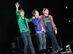 ![]() The Rolling Stones performing at Summerfest in Milwaukee in June 2015. Left to right: Charlie Watts, Ronnie Wood, Mick Jagger, and Keith Richards. | |