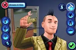 In Create-a-Sim, instead of Lifetime Wishes, there are personas. Personas decide which lifetime wishes your sim will have, as a persona is the largest factor in a Sim's personality. Sims start out with a small house. The house can be expanded every five sim days if the player can afford it.[70] There are four careers in the town: biology, politics, business, and culinary. As in the PC version, Sims can also learn skills. There are nearly 75 wishes in the game.[71] When all of them are fulfilled, Sims unlock the criminal career and have the ability to purchase a car. In some events, such as appliances breaking down, the player must play a minigame to solve or do the action.