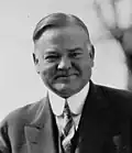 In 1930, Veterans of Foreign Wars started a petition for the United States to officially recognize "The Star-Spangled Banner" as the national anthem.[35] Five million people signed the petition.[35] The petition was presented to the United States House Committee on the Judiciary on January 31, 1930.[36] On the same day, Elsie Jorss-Reilley and Grace Evelyn Boudlin sang the song to the committee to refute the perception that it was too high pitched for a typical person to sing.[37] The committee voted in favor of sending the bill to the House floor for a vote.[38] The House of Representatives passed the bill later that year.[39] The Senate passed the bill on March 3, 1931.[39] President Herbert Hoover signed the bill on March 4, 1931, officially adopting "The Star-Spangled Banner" as the national anthem of the United States of America.[1] As currently codified, the United States Code states that "[t]he composition consisting of the words and music known as the Star-Spangled Banner is the national anthem."[40] Although all four stanzas of the poem officially compose the National Anthem, only the first stanza is generally sung, the other three being much less well known.[41]