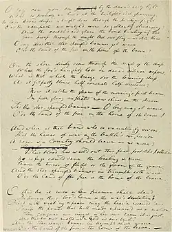 Francis Scott Key's original manuscript copy of his "Defence of Fort M'Henry" poem, now on display at the Maryland Historical Society