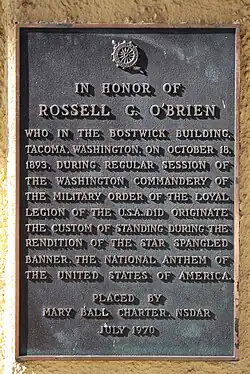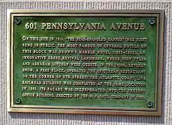 A commemorative plaque in Washington, D.C., marking the site at 601 Pennsylvania Avenue where "The Star-Spangled Banner" was first publicly sung