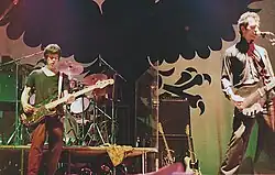 In the latter half of the 1970s, the Stranglers toured Japan twice, joining the alternative music scene of Tokyo, which was evolving from the punk sound of Kyoto-based band Murahachibu (村八分, Ostracism), whose music influence spread to Tokyo in 1971. The Stranglers were the only foreign band to take part in a landmark scene focused around S-KEN Studio in Roppongi and The Loft venues in Shinjuku and Shimokitazawa from 1977 to 1979.[30] The scene included bands such as Friction, and they became friends with the band Red Lizard, whom they invited back to London, where the band became known as Lizard.[31] In 1979, while still in Japan, Burnel also became close friends with Keith, co-founder and drummer for ARB. At the end of 1983, ARB's bassist was imprisoned, leaving the band with a problem for their forthcoming tour. Burnel took time out from the Stranglers to fly out to Japan at short notice and join ARB to cover the tour, including appearing at the All Japan Rock Festival at Hibaya park, becoming the first non-Japanese to ever appear at the festival.[32][33][34] Burnel toured with ARB for five weeks and played on two studio tracks, "Yellow Blood" and "Fight it Out", both of which appeared on the RCA Victor ARB album Yellow Blood.[35]