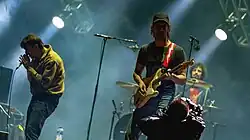 ![]() The Strokes on the Chelsea Hotel rooftop in 2003; clockwise from top-left: Fabrizio Moretti, Nikolai Fraiture, Nick Valensi, Julian Casablancas, and Albert Hammond Jr. | |