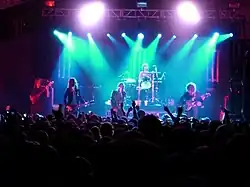 In May 2019, the band performed for the first time in over two years at a benefit show in Los Angeles. At this venue, the band debuted a new song entitled "The Adults Are Talking".[69] The show kicked off the band's "global comeback" tour.[70][71] However, this tour was met with many obstacles early on, from sound issues[72] to rained-out shows[73] to entire festivals being cancelled.[74] During the band's 2019 New Year's Eve show in Brooklyn, Casablancas announced that the band's sixth studio album would be released sometime in 2020.[75] At the show, they also debuted a new song, titled "Ode to the Mets".[76]