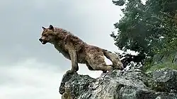 Overseeing the visual effects department for New Moon was Susan MacLeod, who had previously worked with Weitz during the production of The Golden Compass.[62] MacLeod enlisted Tippett Studio to create the computer-generated wolves, while Prime Focus of Vancouver handled the effects of the vampires.[62] To prepare for the aggressive task of making the wolves look real, Tippet artists studied wolf culture.[63] They also were able to reflect leadership and human muscle size by adjusting certain features of the wolves, such as their fat and height.[63] In February 2009, a group of artists was able to travel to Wolf Mountain Sanctuary, outside of Los Angeles, and see real wolves.[63] The artists were able to observe the behavior of both the timber and arctic wolves, who ran in packs of three to five. The idea was to give everyone a deeper feeling of the creature that they were creating.[63]