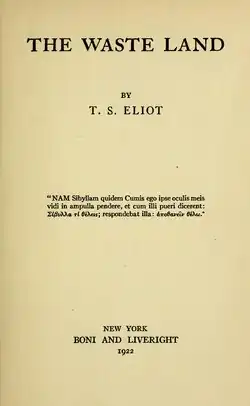 - Eliot, T. S. (1922). (1st ed.). New York: Horace Liveright – via Wikisource.