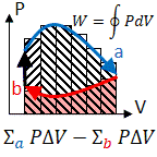 For example :--the pressure-volume mechanical work output from the ideal Stirling cycle (net work out), consisting of 4 thermodynamic processes, is: