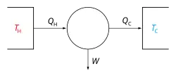 1. ^ The sign convention (Q is heat supplied to the system as, W is work done by the system) is that of Rudolf Clausius. The opposite sign convention is customary in chemical thermodynamics.