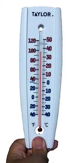 Thermometer with Fahrenheit (symbol °F) and Celsius (symbol °C) units.