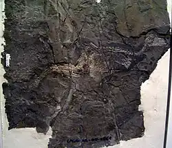 The trackway of a swimming theropod, the first in China of the ichnogenus named Characichnos, was discovered at the Feitianshan Formation in Sichuan.[55] These swim tracks support the hypothesis that theropods were adapted to swimming and capable of traversing moderately deep water. Dinosaur swim tracks are considered to be rare trace fossils, and are among a class of vertebrate swim tracks that also include those of pterosaurs and crocodylomorphs. The study described and analyzed four complete natural molds of theropod foot prints that are now stored at the Huaxia Dinosaur Tracks Research and Development Center (HDT). These dinosaur footprints were in fact claw marks, which suggest that this theropod was swimming near the surface of a river and just the tips of its toes and claws could touch the bottom. The tracks indicate a coordinated, left-right, left-right progression, which supports the proposition that theropods were well-coordinated swimmers.[55]
