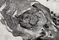 In 2000, the imaging specialist Paul Fisher and colleagues interpreted a concretion in the chest region of the "Willo" specimen as the remnant of a heart. The internal structure of the concretion was revealed using CT scans, showing three low-density areas that the researchers interpreted as the left and right ventricles and the aorta. They suggested that the heart had been saponified (turned to grave wax) under airless burial conditions, and then changed to goethite, an iron mineral, by replacement of the original material, forming a concretion that reflects the original shape of the heart. The two supposed ventricles and the single aorta are consistent with a four-chambered heart as found in modern birds and mammals, suggesting an elevated metabolic rate for Thescelosaurus.[20][8] Following this discovery, "Willo" became widely known in the public as the "Dinosaur with a heart of stone".[8]