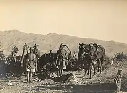 Meanwhile, the previous day, British and Indian forces had launched an attack on 'Stonehenge Ridge', where an Afghan force of about 3,000 men had established themselves with a number of artillery pieces and machine guns.[42] Under cover of a preliminary bombardment to soften up the Afghan defences, men from the 11th Sikh Regiment had launched the initial assault, however, they were forced to stop their attack when they ran out of ammunition at 08.00 hours, and although a resupply was effected at 10.30 hours,[43] it was not until 14.00 hours that the attack was resumed.[44] By this time the troops were exposed to the heat of the day; nevertheless, after another barrage was called down, the Sikhs assaulted the Afghan line despite the heat and the attack was carried to the top of the ridge. Upon reaching the escarpment they found that the Afghans had fled the battlefield, leaving most of their equipment, artillery and a number of standards.[45] During the assault the British and Indian forces lost 22 killed and 157 wounded, while Afghan losses were estimated at 200 killed and 400 wounded.[42]