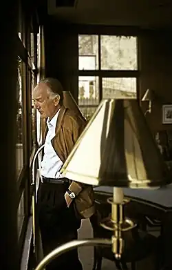 In 1978, Bernhard was diagnosed with sarcoidosis and a terminal heart complaint. His half-brother Peter Fabjan, a doctor of medicine, moved to Gmunden, near the author's farmhouse, and became his unofficial medical adviser.[25][26] In 1979, Bernhard resigned from the German Academy for Language and Literature when it made the former West German president Walter Scheel an honorary member. In a letter to the Frankfurter Allgemeine Zeitung he called the academy pretentious and hypocritical for admitting mediocre politicians.[27]