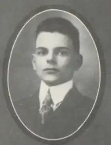Dewey was born and raised in Owosso, Michigan, where his father, George Martin Dewey, owned, edited, and published the local newspaper, the Owosso Times.[7] His mother, Annie (Thomas), whom he called "Mater", bequeathed her son "a healthy respect for common sense and the average man or woman who possessed it". She also left "a headstrong assertiveness that many took for conceit, a set of small-town values never entirely erased by exposure to the sophisticated East, and a sense of proportion that moderated triumph and eased defeat".[8] One journalist noted that as a boy "he did show leadership and ambition above the average; by the time he was thirteen, he had a crew of nine other youngsters working for him" selling newspapers and magazines in Owosso.[9] In his senior year in high school he was the president of his class and the chief editor of the school yearbook.[10] His senior caption in the yearbook stated "First in the council hall to steer the state, and ever foremost in a tongue debate", and a biographer wrote that "the bent of his mind, from his earliest days, was towards debate".[9] He received his B.A. degree from the University of Michigan in 1923, and his LL.B. degree from Columbia Law School in 1925.[11][12]