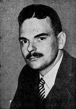 As District Attorney, Dewey successfully prosecuted and convicted Richard Whitney, former president of the New York Stock Exchange, for embezzlement. Whitney was given a five-year prison sentence.[41] Dewey also successfully prosecuted Tammany Hall political boss James Joseph Hines on thirteen counts of racketeering. Following the favorable national publicity he received after his conviction of Hines, a May 1939 Gallup poll showed Dewey as the frontrunner for the 1940 Republican presidential nomination, and gave him a lead of 58% to 42% over President Franklin D. Roosevelt in a potential 1940 presidential campaign.[42] In 1939, Dewey also tried and convicted American Nazi leader Fritz Julius Kuhn for embezzlement, crippling Kuhn's organization and limiting its ability to support Nazi Germany in World War II.