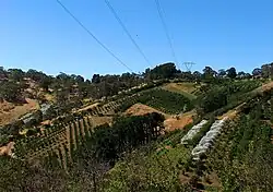 Playford's forebears had lived in the town of Norton Summit for generations. Pictured here are market gardens on the hills near the town.