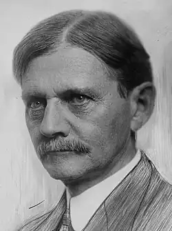In 1906, Marshall declined his party's nomination to run for Congress. He hinted, however, to state party leaders that he would be interested in running for Indiana governor in the 1908 election.[30] He soon gained the support of several key labor unions, and was endorsed by Louis Ludlow, a reporter for the Indianapolis Star. Despite this support, Marshall was a dark horse candidate at the state convention.[31] Initially, Thomas Taggart, Indiana Democratic Party boss, did not support him because of Marshall's support of prohibition.[32] Taggart wanted the party to nominate anti-prohibitionist Samuel Ralston, but the prohibitionist and anti-Taggart factions united with Marshall's supporters. To oppose L. Ert Slack, a temperance candidate, Taggart persuaded Ralston's delegates to support Marshall and give him the votes he needed to win the nomination.[33][34][35]