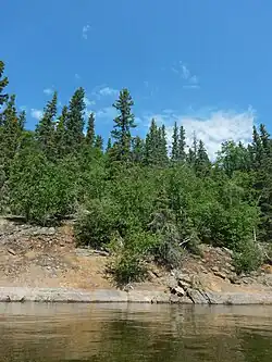 The dominant coniferous species are white spruce (Picea glauca), black spruce (Picea mariana), jack pine (Pinuus banksiana), tamarack (Larix laricina) and balsam fir (Abies balsamea). White birch (Betula papyrifera) is the most common deciduous species.