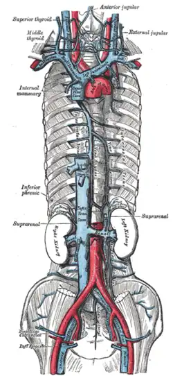 The diaphragm drains blood into the brachiocephalic veins, azygos veins, and veins that drain into the inferior vena cava and left suprarenal vein.[7]
