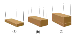 Galileo's thought experiment concerned the outcome (c) of attaching a small stone (a) to a larger one (b).