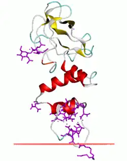 Anchoring of bovine prothrombin to the membrane through its Gla domain.[16]