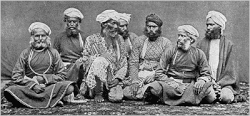 • Another tradition preserved by the Thuggee clan members stated that they were Kanjars or descended from those who worked in the Mughal camps.[50][51][52] A Thuggee member has testified that some of his predecessors were forced to disguise themselves as members of the Kanjar tribe after fleeing Delhi, although they were originally descended from certain high-caste Muslim tribes. The said Thuggee, however, stated that their claimed descent was unverified and that some of them may be partially descended from the lower castes who worked in the Mughal army's camps. However, Mike Dash stated that the Thuggee's claim of being closed to outsiders is contradicted by the fact that people of all backgrounds were allowed to join them by the early 19th century according to available evidence.[52] A Brahmin Thuggee who was interrogated by British Raj counselor William Henry Sleeman referred to the Muslim Thuggees as Kanjar tribesmen. However, another member of Thuggee refuted this.[51]