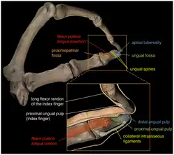 - Has greater breadth in the distal phalanx than in the proximal phalanx