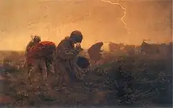 Thunderstorm asthma is the triggering of an asthma attack by environmental conditions directly caused by a local thunderstorm. During a thunderstorm, pollen grains can absorb moisture and then burst into much smaller fragments with these fragments being easily dispersed by wind. While larger pollen grains are usually filtered by hairs in the nose, the smaller pollen fragments are able to pass through and enter the lungs, triggering the asthma attack.[83][84][85][86]