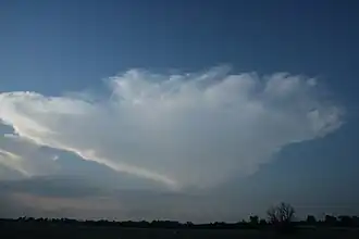 All thunderstorms, regardless of type, go through three stages: the developing stage, the mature stage, and the dissipation stage.[12][13] The average thunderstorm has a 24 km (15 mi) diameter. Depending on the conditions present in the atmosphere, each of these three stages take an average of 30 minutes.[14]