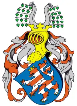 The coat of arms of Thuringia shows the lion of the Ludowingian Landgraves of 12th-century origin. The eight stars around it represent the eight former states which formed Thuringia. The flag of Thuringia is a white-red bicolor, derived from the white and red stripes of the Ludowingian lion. The coat of arms and flag of Hesse are quite similar to the Thuringian ones, since they are also derived from the Ludowingian symbols.