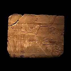A wall block fragment inscribed with the birth name of Thutmose III. Now in the Petrie Museum of Egyptian Archaeology, London