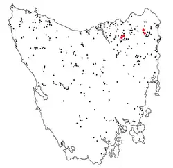 | Historic thylacine range in Tasmania (in green)[4] | |
