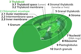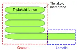 - ^ Mustárdy, L.; Buttle, K.; Steinbach, G.; Garab, G. (2008). "The Three-Dimensional Network of the Thylakoid Membranes in Plants: Quasihelical Model of the Granum-Stroma Assembly". Plant Cell. 20 (10): 2552–2557. Bibcode:2008PlanC..20.2552M. doi:10.1105/tpc.108.059147. PMC 2590735. PMID 18952780.