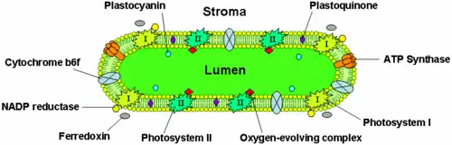 - ^ a b c Peltier J, Emanuelsson O, Kalume D, et al. (2002). "Central Functions of the Lumenal and Peripheral Thylakoid Proteome of Arabidopsis Determined by Experimentation and Genome-Wide Prediction". Plant Cell. 14 (1): 211–36. Bibcode:2002PlanC..14..211P. doi:10.1105/tpc.010304. PMC 150561. PMID 11826309.