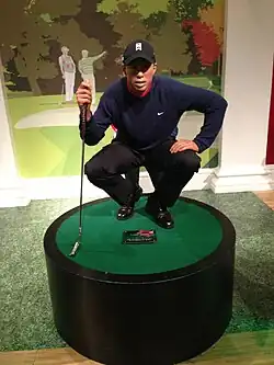 Since his record-breaking win at the 1997 Masters, Woods has been the biggest name in golf and his presence in tournaments has drawn a huge fan following. Some sources have credited him for dramatically increasing prize money in golf, generating interest in new PGA tournament audiences, and for drawing the largest TV ratings in golf history.[69][152] His recognition as one of the most famous athletes in modern history includes being depicted in a wax sculpture at Madame Tussauds.[153]