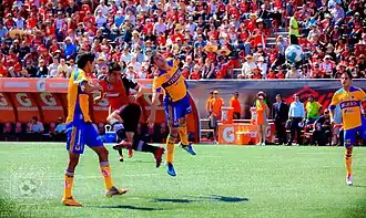 For the Apertura 2017 season, Tigres acquired Ecuadorian forward Enner Valencia, Brazilian midfielder Rafael Carioca and French defender Timothée Kolodziejczak.[23] On 16 July 2017, Tigres beat Guadalajara by 1–0 at the StubHub Center in Carson, California, becoming the back-to-back Champion of the Campeón de Campeones Cup by winning the 2017 and 2016 editions. Tigres finished the regular season of the Apertura 2017 as second place with 32 points. In playoffs, Tigres tied 1–1 in both legs against Club León and by an aggregate of 2–2, secured semifinals due table position. In semifinals, Tigres defeated Club América by 1–0 in the away game and 3–0 in home. Tigres played the historical final against archrival CF Monterrey. In the first leg the teams tied by 1–1 at the Estadio Universitario. In the Estadio BBVA Bancomer, Tigres beat Monterrey by 2–1 with goals of Edu Vargas and Francisco Meza. In the aftermath, winger Jürgen Damm stated: "We knew we were facing the best team of the season, but, they were facing the best team of the decade."[24] After the fourth title since 2010, Tigres was dubbed by the media as "The Team of the Decade".[25]