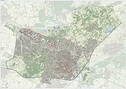 When the wool industry collapsed in the 1960s, Cees Becht was the mayor of Tilburg. While he was in office, many old buildings were destroyed, including some precious monuments. The Koningswei neighbourhood (King's Meadows) was demolished and replaced by Koningsplein (King's Square). The reason for demolishing the neighbourhood was to replace slum with modern building. The new development, however, has not been successful and many feel that the square feels abandoned most of the year.[8] Considered even worse was the demolition of the old city hall. This classicistic-styled building was a national-registered monument, but even that did not stop Becht's plans to demolish it to build the nine-storey, modern-day, black complex.[9] A part of the empty area was used to build the system of the inner Cityring.[10] Another building that was demolished was the old railway station, which was replaced due to Hoogspoor (literally: high rails), a project bringing the railway on viaducts to reduce traffic congestion around 1960. The century-old station building was replaced by the modern one.[11] Because of all of this and some more parts of Tilburg, Cees Becht gained the dubious nickname Cees de Sloper (Cees the demolisher).[12]