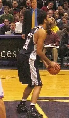 Timothy Theodore Duncan (born April 25, 1976)[1] is an American former professional basketball player and coach. He spent his entire 19-year career with the San Antonio Spurs in the National Basketball Association (NBA). Nicknamed "the Big Fundamental", he is widely considered to be the greatest power forward of all time and one of the greatest players in NBA history,[5] and was a central contributor to the franchise's success during the 2000s and 2010s.[6] He was inducted into the Naismith Memorial Basketball Hall of Fame in 2020 and named to the NBA 75th Anniversary Team in 2021.