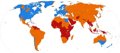 All nations currently use standard time zones for secular purposes, but not all of them apply the concept as originally conceived. Several countries and subdivisions use half-hour or quarter-hour deviations from standard time. Some countries, such as China and India, use a single time zone even though the extent of their territory far exceeds the ideal 15° of longitude for one hour; other countries, such as Spain and Argentina, use standard hour-based offsets, but not necessarily those that would be determined by their geographical location. The consequences, in some areas, can affect the lives of local citizens, and in extreme cases contribute to larger political issues, such as in the western reaches of China.[24] In Russia, which has 11 time zones, two time zones were removed in 2010[25][26] (one year before the daylight saving time would be observed all year round on March 27 of the following year) and reinstated in 2014 (when the country transferred from daylight saving time or summer time back to standard time or winter time permanently).[27]
